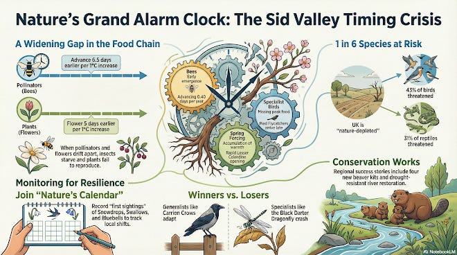 In a healthy ecosystem, nature operates like a finely tuned clock-spring, wound with precision to ensure every biological gear turns at the exact right moment. This study of timing—the “when” of the natural world—is known as phenology. It is the science of recording the first bud bursting into leaf in Harpford Woods, the celebratory return of the swallow to the Sid Valley, or the precise moment a queen bee emerges from her winter slumber.